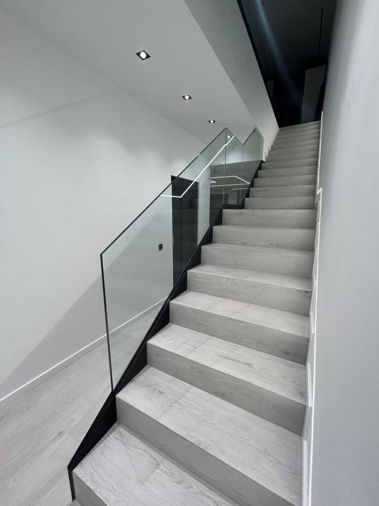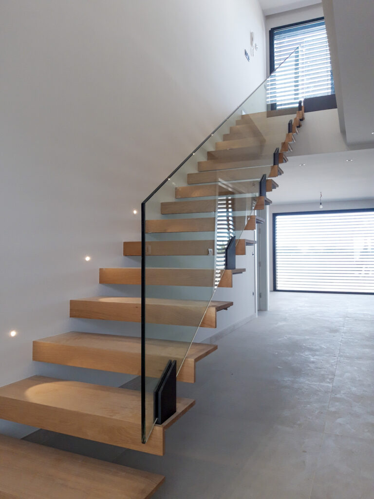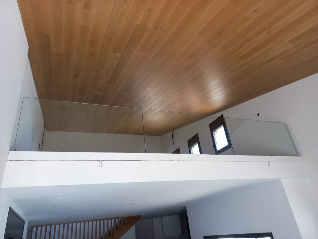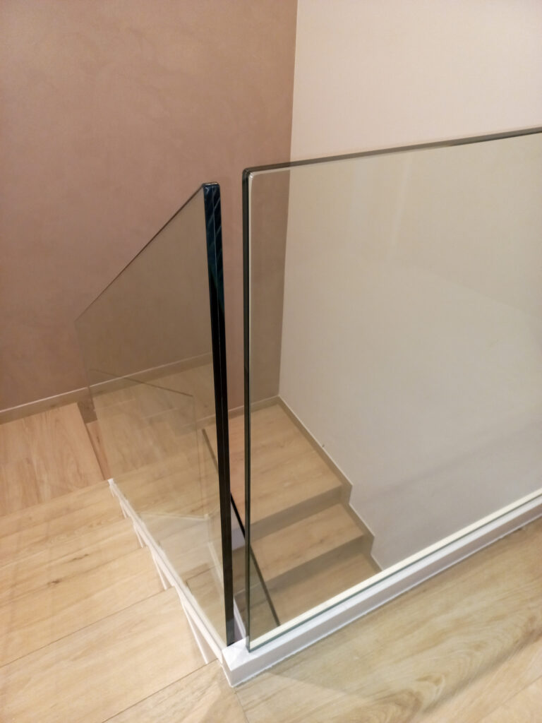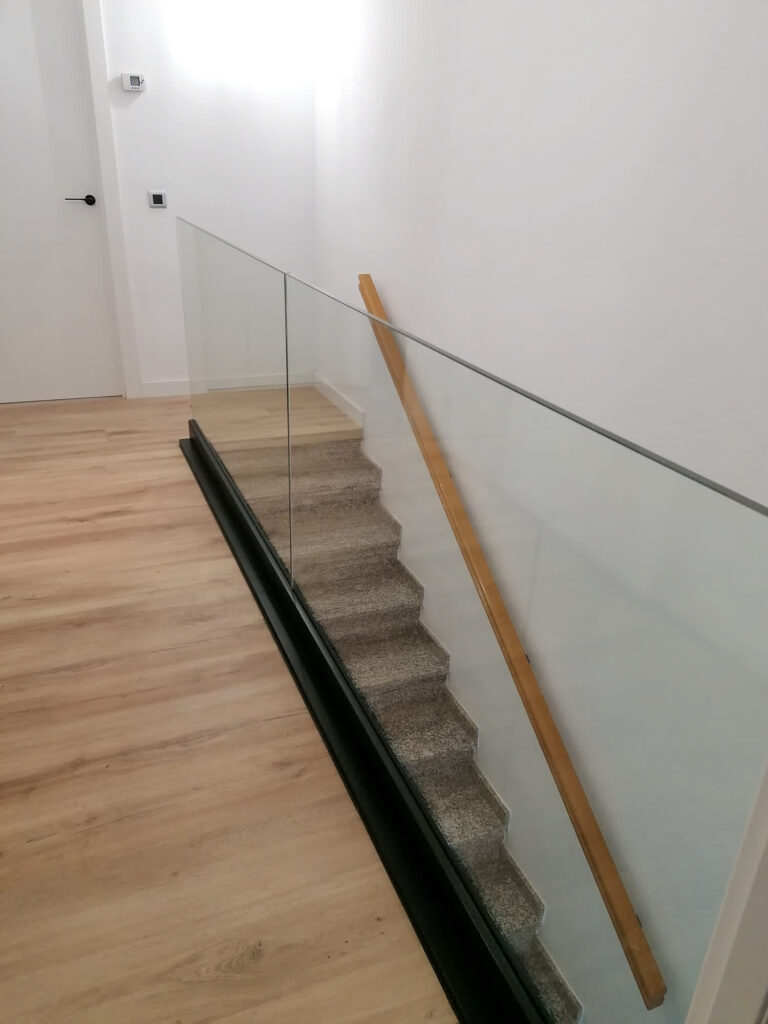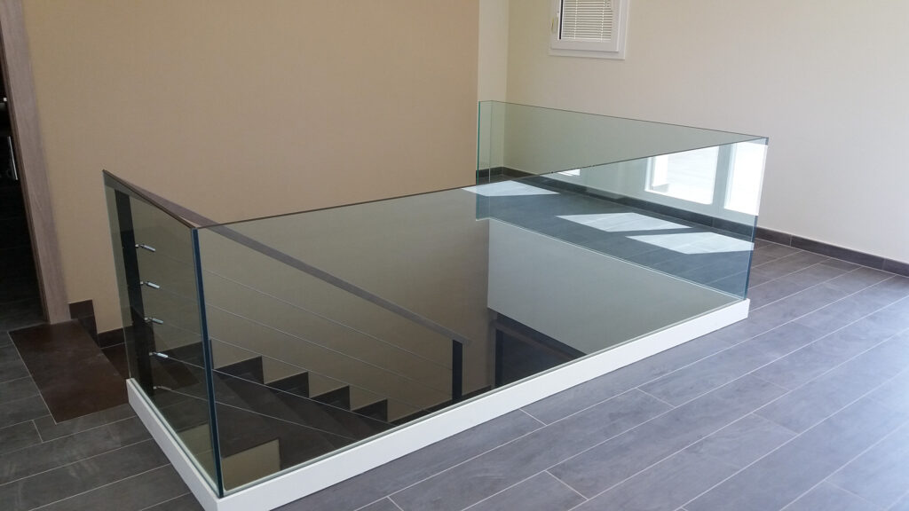 Estructura d’acer inoxidable combinada amb vidre laminat, ideal per potenciar la llum i la sensació d’amplitud. Una opció elegant i segura, sense passamans.